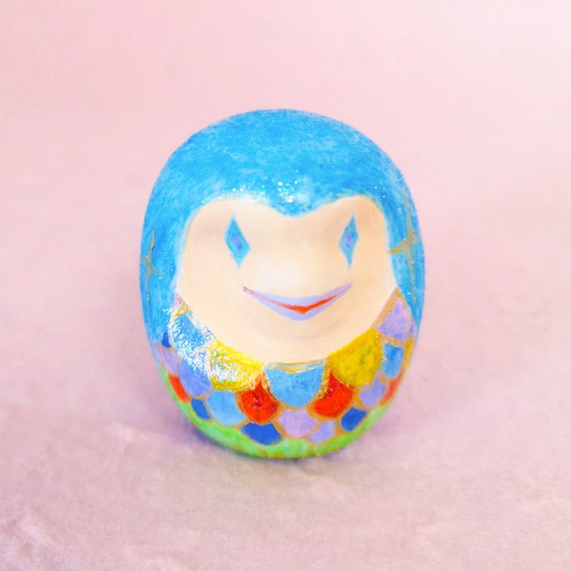 日本で幸運をもたらす縁起物として愛されてきただるま。 底面には重りが付いており、転んでもすぐに起き上がる縁起物のだるまです。 新型コロナウィルスの1日も早い終息と、明るい将来へ希望が持てるようにと願って創作した作品の1つが、このアマビエだるまです。 疫病退散にご利益があるというアマビエの伝承や、そのアマビエを描いた水木しげるさんの原画を基にしながらも、愛らしく、ガーリーなアイドル的なイメージで創作してみました。 故事にあるように、光り輝く感じを大切に、表現してみました。 ピンク色の光り輝くカールした髪の毛と、ハートマークがラブリーなアマビエ 姫だるま です。 アマビエが、海から出現したとの伝承より、和の文様、フラクタル図形である青海波が、描いています。 こんな大変な状況ですが、明るさと「笑顔」を忘れないで、乗り切って行きましょう! *今回は、特別価格にて提供中 ∞∞∞∞∞∞∞∞∞∞∞∞∞∞∞∞∞∞∞∞∞∞∞∞∞∞∞∞∞∞∞∞∞∞∞∞∞ ■サイズ・・・高さ約5cm×横約4.5cm×幅約4.5cm ■素 材・・・紙 ※アーティストにより、ひとつひとつ手描きで絵付けをしています。 表情、色合い等が写真と異なる場合がありますがご了承ください。 ※フェルト付き。 ※ラッピングご希望の方はBOXと紙袋をお付けします。(有料) ※こちらの商品は、定形外普通郵便での発送となり、事故の際に郵便局からの補償は ありません。 補償が必要な場合は、書留にてお送りいたしますので、お手数ですが、 お問い合わせください。万が一郵便紛失・破損事故が起きました場合、こちらでは 責任を負いかねますのでご了承ください。 ∞∞∞∞∞∞∞∞∞∞∞∞∞∞∞∞∞∞∞∞∞∞∞∞∞∞∞∞∞∞∞∞∞∞∞∞∞