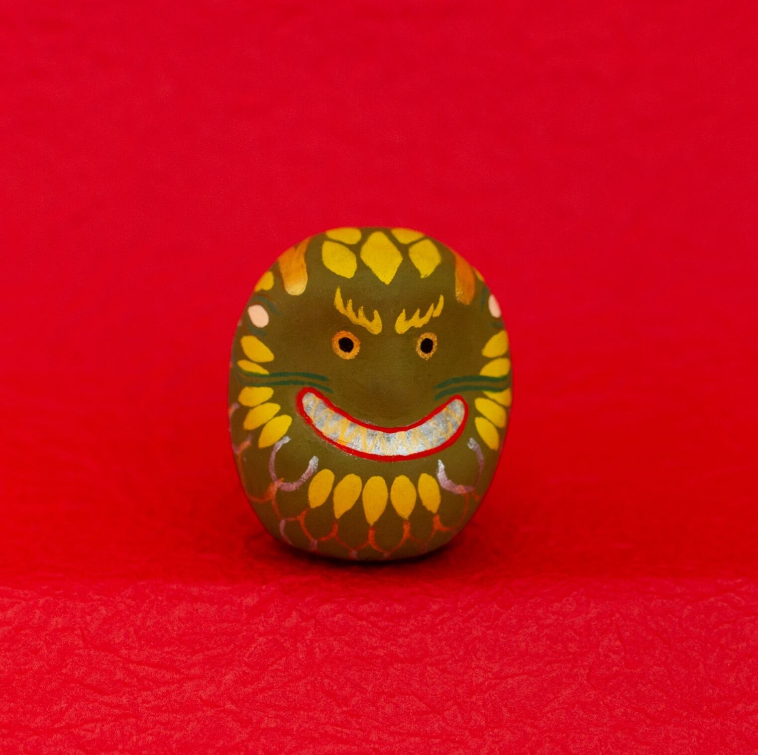 底面には重りが付いており、転んでもすぐに起き上がる縁起物のだるまです。