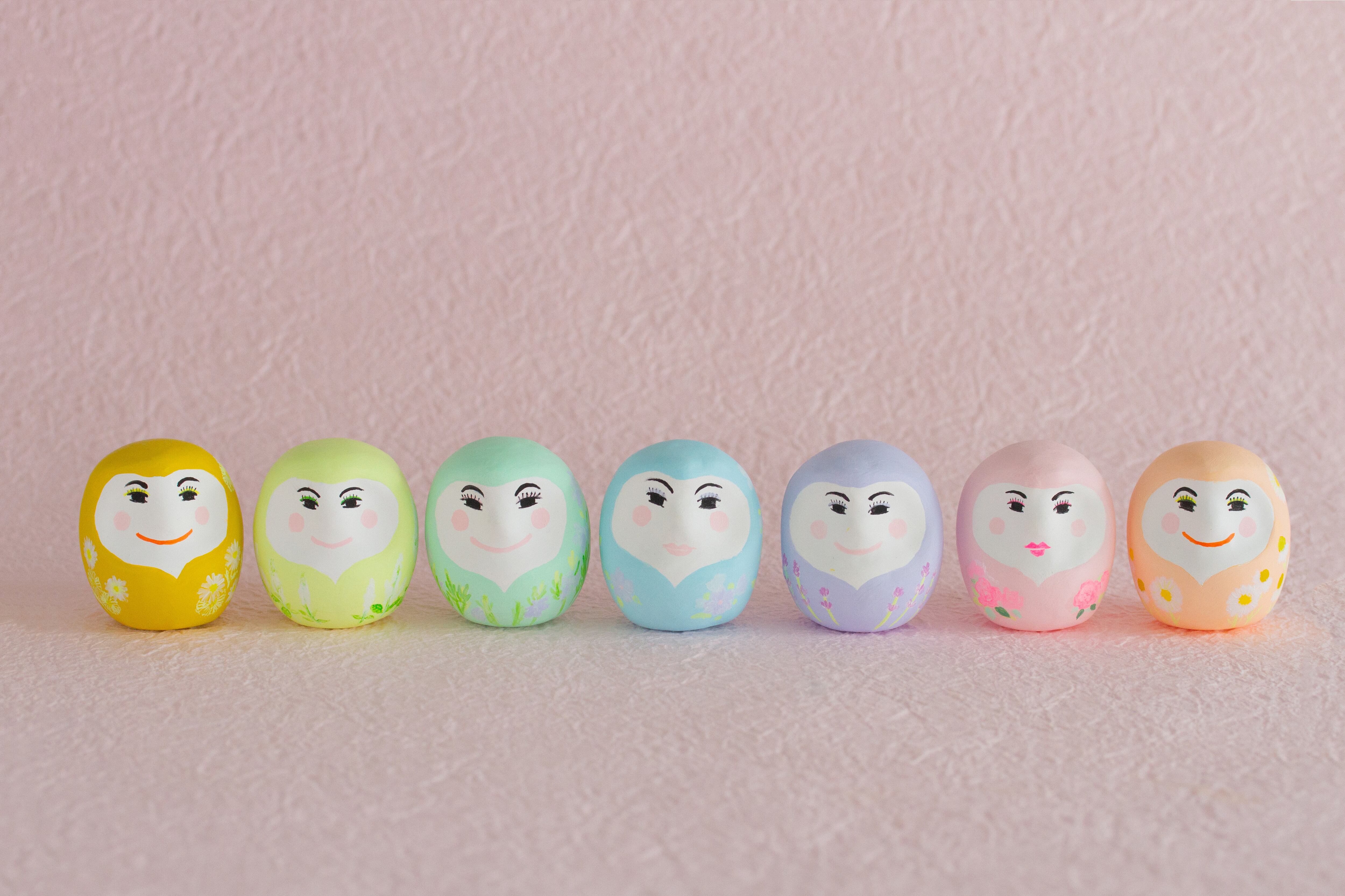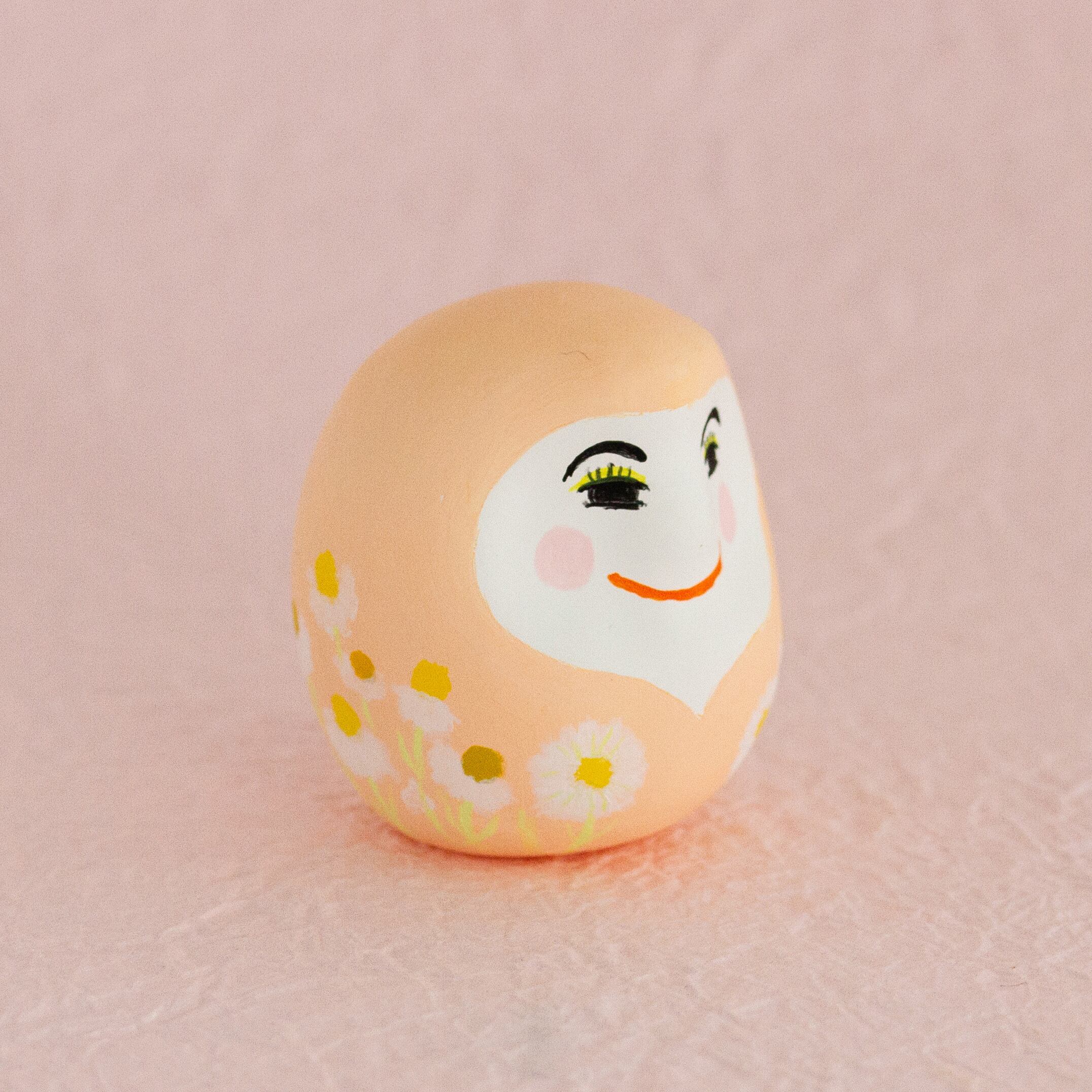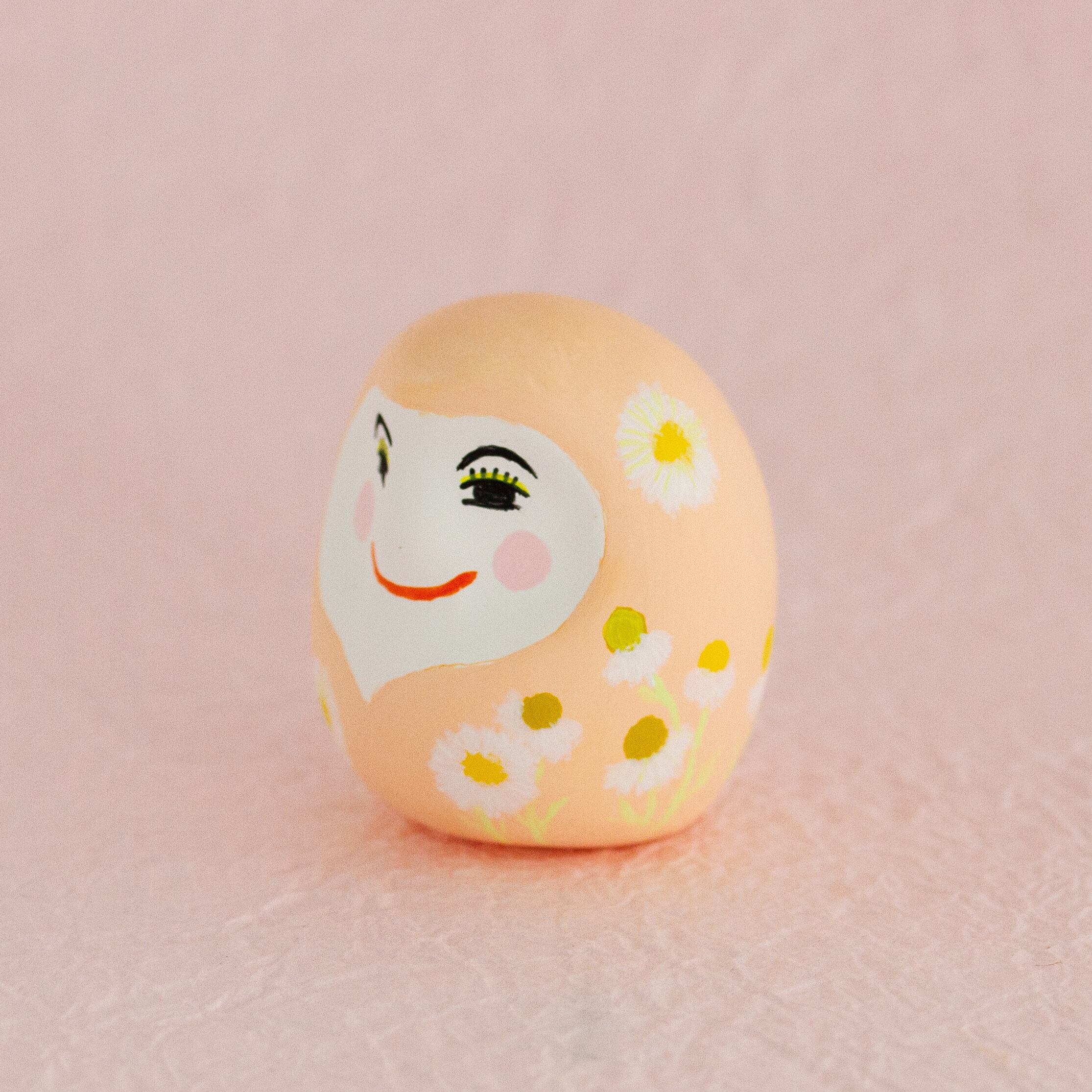 パステルオレンジにカモミールで飾られた癒しだるまです。