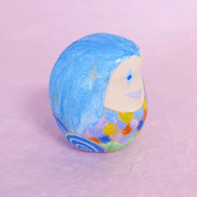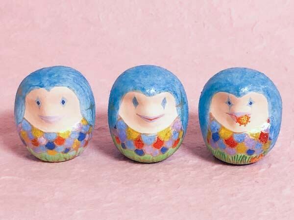 新型コロナウィルスの1日も早い終息と、明るい将来へ希望が持てるようにと願って創作した作品の1つが、このアマビエだるまです。
