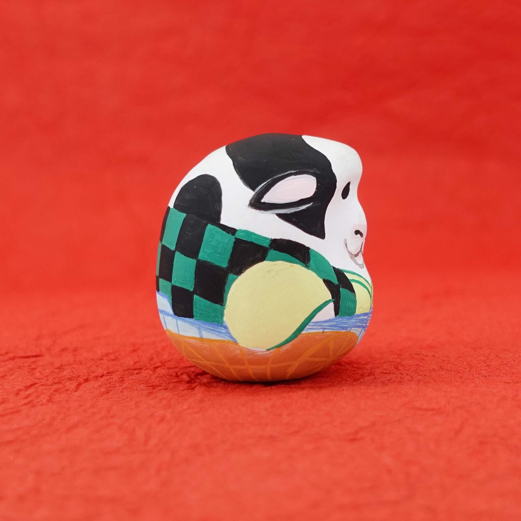底面には重りが付いており、転んでもすぐに起き上がる縁起物のだるまです。