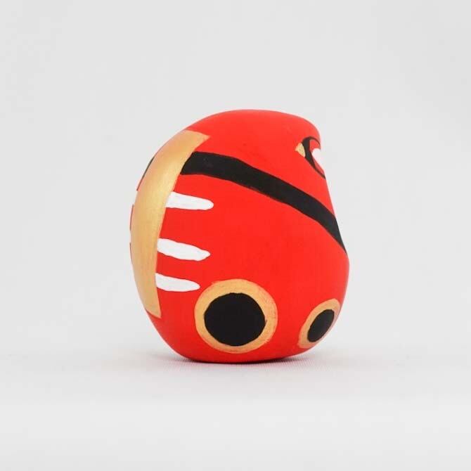 底面には重りが付いており、転んでもすぐに起き上がる縁起物のだるまです。