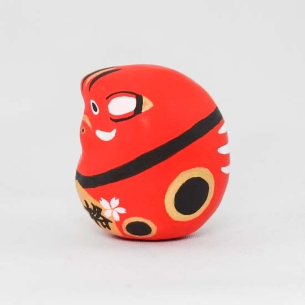 底面には重りが付いており、転んでもすぐに起き上がる縁起物のだるまです。